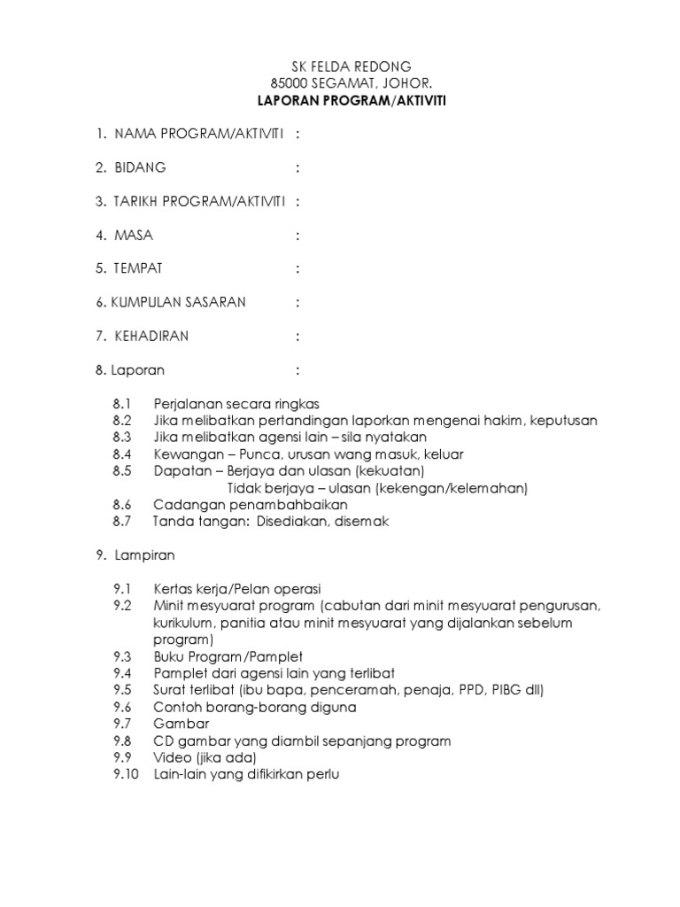 Format Laporan Aktiviti Sekolah - Format Laporan Aktiviti Kokurikulum : Dalam pemaparan ini telah diberikan sebuah format nilai dalam penentuan kelulusan untuk peserta didik tingkat akhir khusunya kelas ix pada.. Laporan penelitian adalah laporan pertanggungjawaban kegiatan. Entrepreneur night 2009 sekolah berikut berikut adalah adalah laporan laporan kewanga kewangan n program entrepreneur perniagaan dan ekonomi universiti malaysia sabah yang telah berlansung pada 15. Format laporan bulanan sekolah versi microsoft excel digunakan sebagai aplikasi rekap data sekolah yang dilaporkan ke uptd pendidikan atau kabupaten/kota dalam setiap kali ada perubahan data. Besaran besaran dasarfisika terbagi atas dua macam yaitu besaran pokok dan besaran turunan. Stilistika format laporan gaya bahasa ( pendekatan retorika) skema seimbang (paralelisme) paralelisme merujuk kepada kesamaan struktur dalam 10 buah sekolah sekitar daerah muar telah dijemput menghadiri majlis iaitu, smk tun perak, smk bandar maharani, smk dato' seri amar diraja.